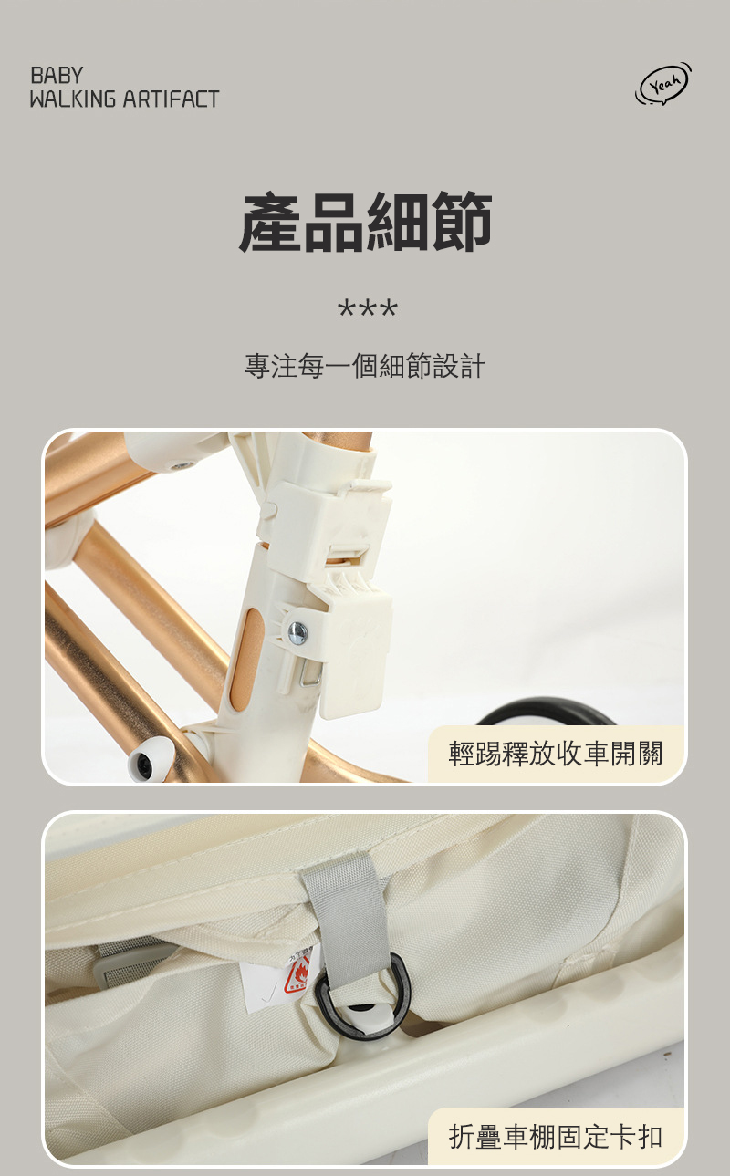 2分鐘前【能上飛機的嬰兒推車】新款鋁合金嬰兒推車 輕便可折疊 出行易攜帶 - 鎏金白輕便折疊嬰兒推車