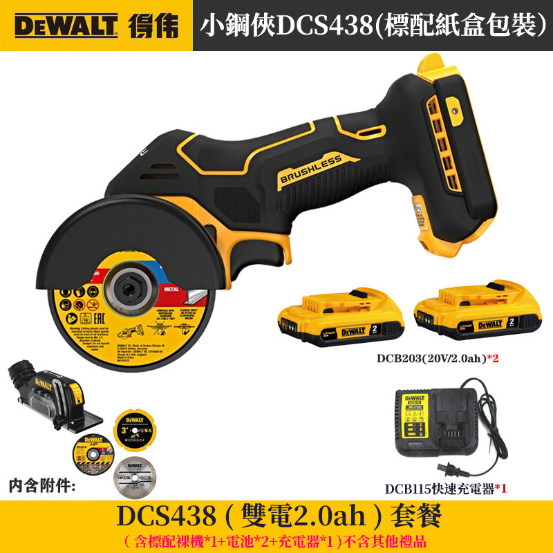 2分鐘前得偉「DeWALT」20V無刷角磨機DCS438小鋼俠 金屬、木材、水力、塑膠管、瓷磚都可切割 單手一機完成! - 小鋼炮【DCS438】两電一充