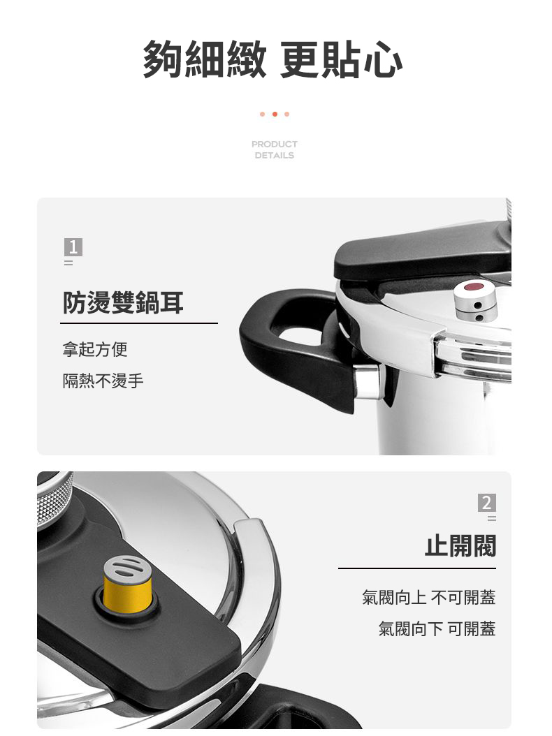 2分鐘前【年底換新大促】燃氣電磁爐通用【德國進口】304不鏽鋼壓力鍋 煮飯/熬粥/炖肉 自動限壓閥排氣保護安全防爆 耐用20年不壞 不滿意包退換 - 升級版八重保護304不鏽鋼重力閥4L強力壓力鍋(1-2人)NT$2380