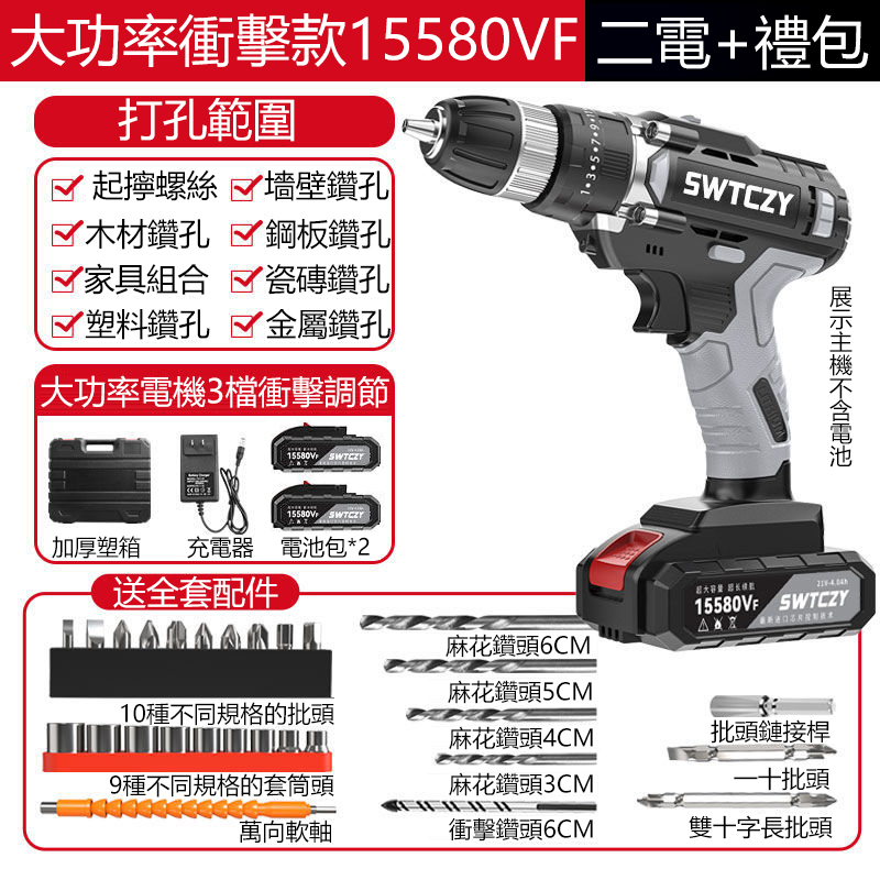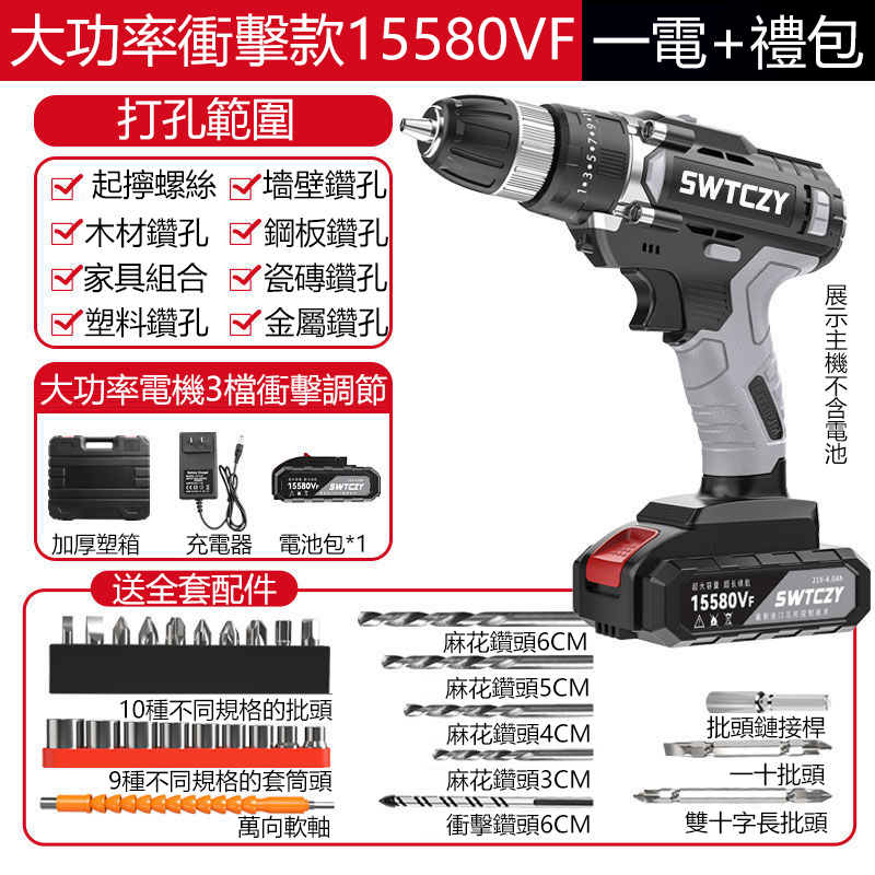 4分鐘前德國大功率 雙速衝擊鋰電鑽 純銅電機 無極變速 雙軸承設計 十年換新 - 進口衝擊15580VF塑箱2電+豪禮 NT$1980