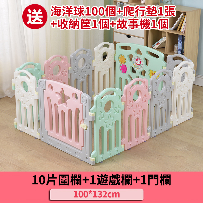 5分鐘前愛他/她!就給他/她滿滿的愛!寶寶學步遊戲圍欄,呵護寶寶安全【週年特賣,買1送4】 - 可折疊普通款【送爬行墊+海洋球+故事機+收納籃】10圍欄+1遊戲欄+1門欄