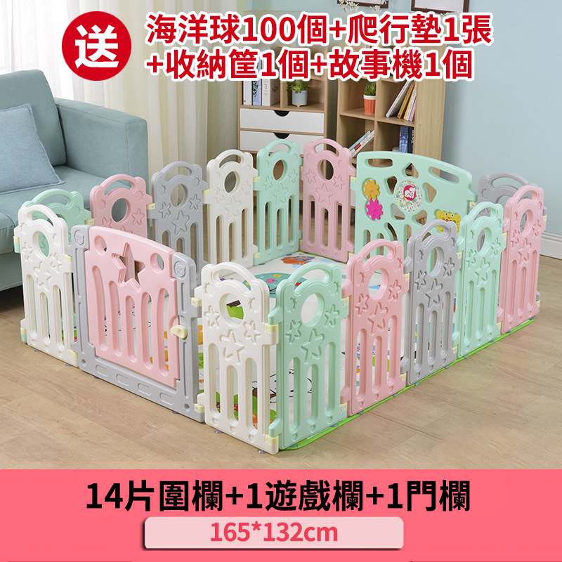 5分鐘前愛他/她!就給他/她滿滿的愛!寶寶學步遊戲圍欄,呵護寶寶安全【週年特賣,買1送4】 - 可折疊普通款【送爬行墊+海洋球+故事機+收納籃】14圍欄+1遊戲欄+1門欄