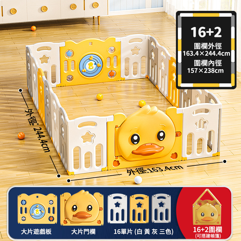 4分鐘前愛他/她!就給他/她滿滿的愛!寶寶學步遊戲圍欄,呵護寶寶安全【週年特賣,買1送4】 - 可折疊小鴨子款【16+2】163*244cm圍欄