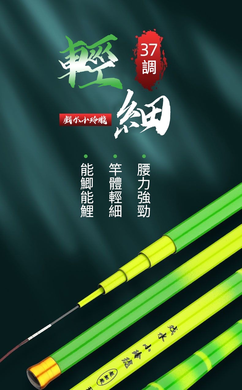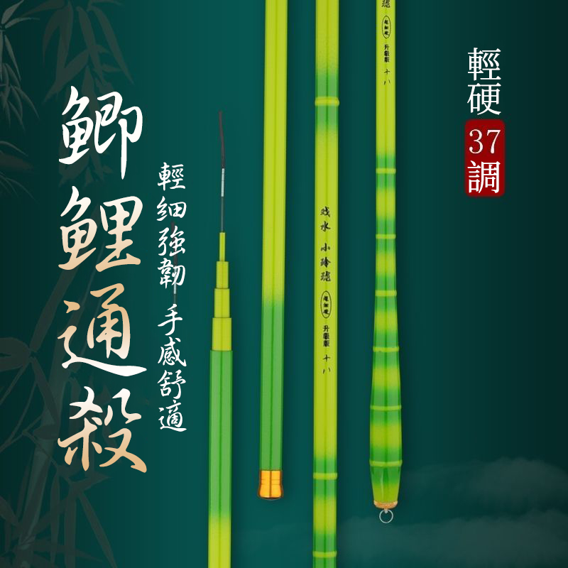 4分鐘前【新上市 買一送一】小玲瓏魚竿,37調綠竹魚竿 超細青竹釣手竿 - (買一送一)18尺(5.4m)+13尺(3.9m)+竿梢 NT$1690