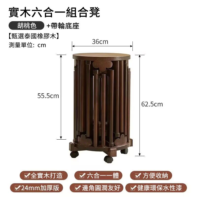 2分鐘前全實木可疊放凳 升級6入組|多功能茶几椅子 二合一設計 MIT台灣製造|茶几+椅子一次搞定 - 【6合1】全實木加厚-可疊放【兩大+四小】底托+萬向輪---NT$6260