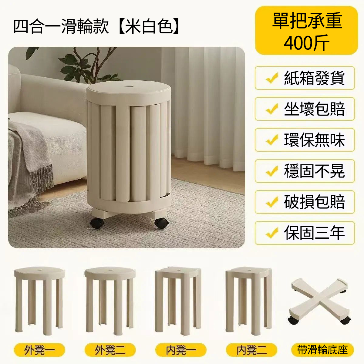 4分鐘前全實木可疊放凳 升級6入組|多功能茶几椅子 二合一設計 MIT台灣製造|茶几+椅子一次搞定 - 【4合1】免安裝-碳鋼腿密度板座面-可疊放【兩大+兩小】底托+萬向輪---NT$3460