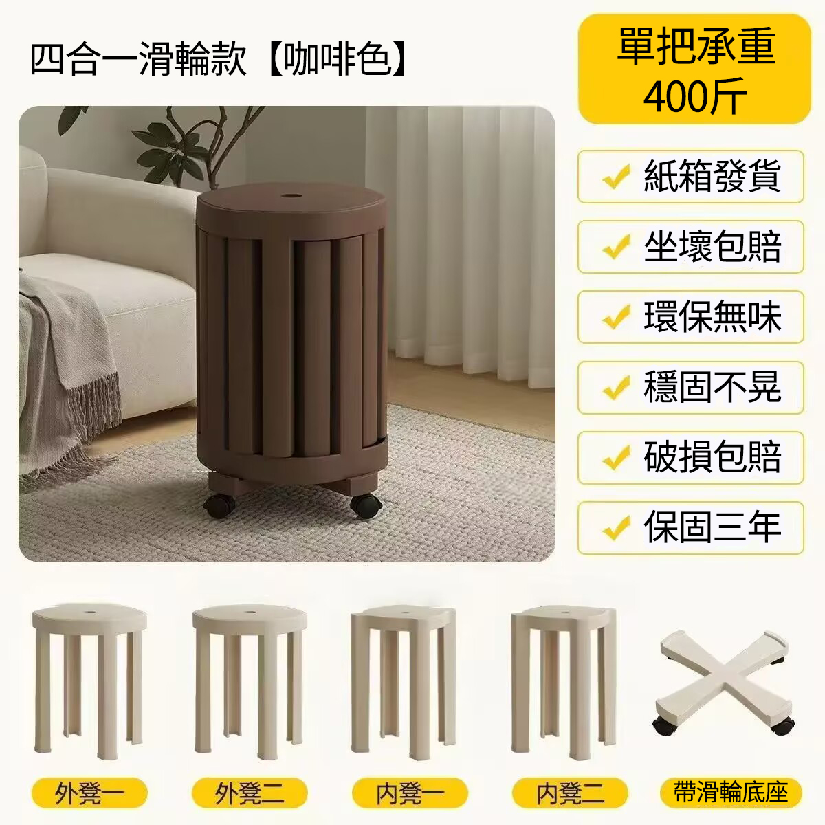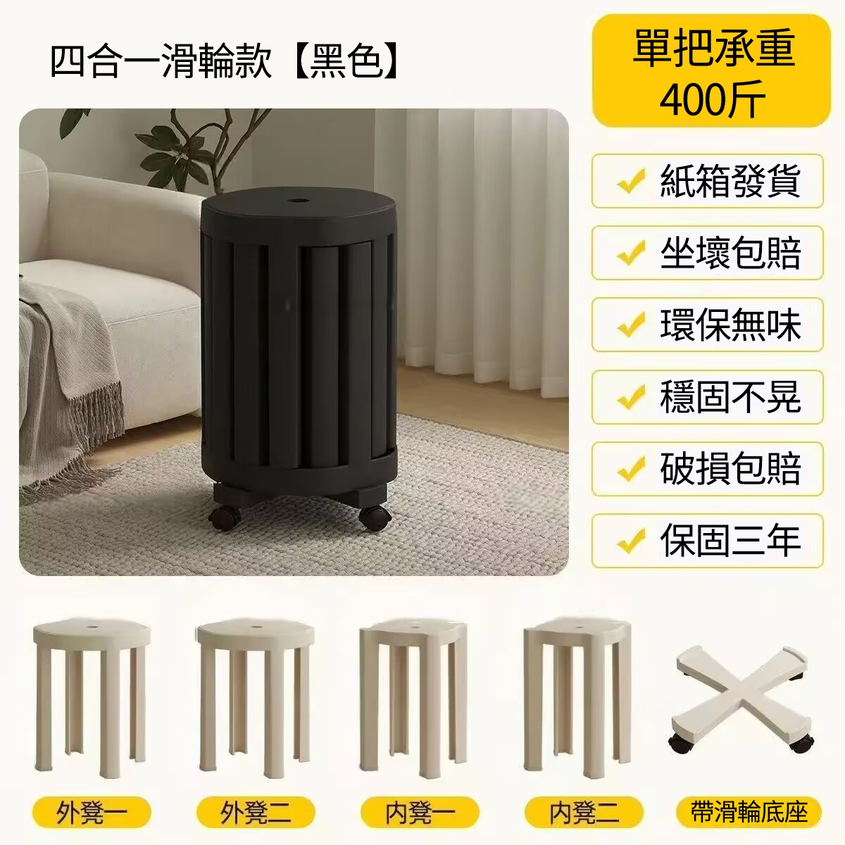 2分鐘前全實木可疊放凳 升級6入組|多功能茶几椅子 二合一設計 MIT台灣製造|茶几+椅子一次搞定 - 【4合1】免安裝-全實木加厚-可疊放【兩大+兩小】底托+萬向輪---NT$4760