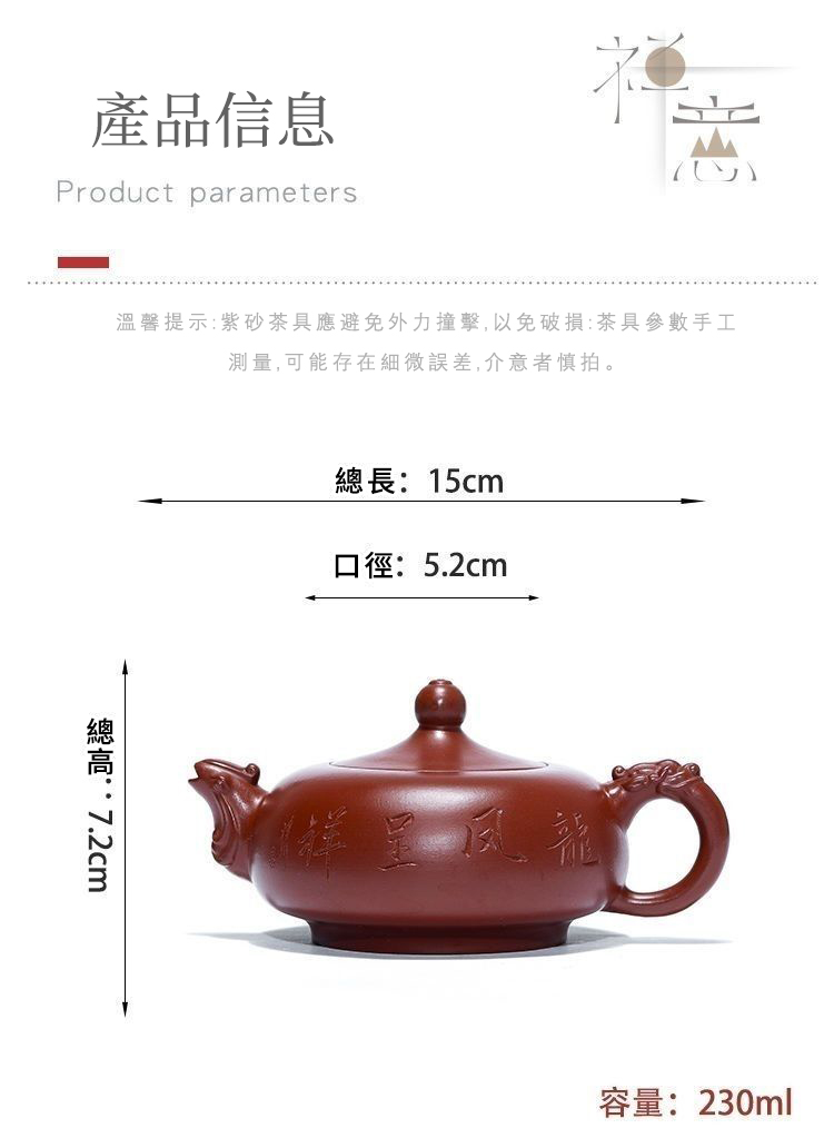 20分鐘前正宗宜興紫砂 ❘ 珍藏原礦大紅袍顧景舟純手工龍鳳呈祥紫砂壺230ml - 一泡而紅 / 龍鳳呈祥 / 安全包裝