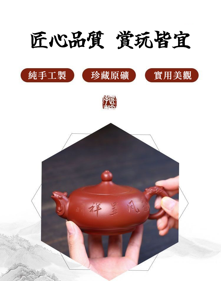 12分鐘前正宗宜興紫砂 ❘ 珍藏原礦大紅袍顧景舟純手工龍鳳呈祥紫砂壺230ml - 一泡而紅 / 龍鳳呈祥 / 安全包裝