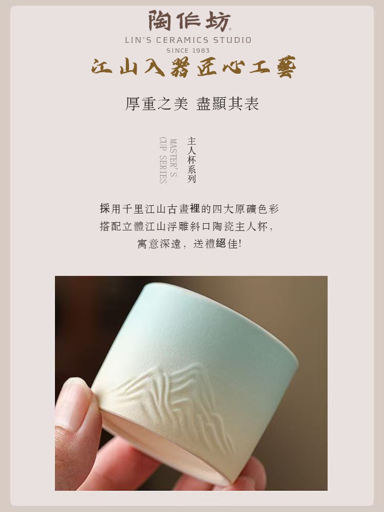 2分鐘前【陶作坊再造支持募資活動】台湾陶藝大師林榮國封窯之作丨錦繡江山陶瓷茶具組,杯側繪有錦繡江山圖,寓意“背有靠山、前程似錦”祝福每一個客人“事業穩固,財源廣進” - 【陶瓷茶具典藏】大師封窯臻品 $763/組 3入組NT$1880