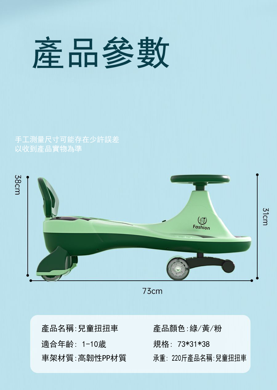 2分鐘前【日本東京熱銷】兒童扭扭車,寶寶大人都可坐 - 高配款 靜音閃光輪+音樂燈光 NT$1750