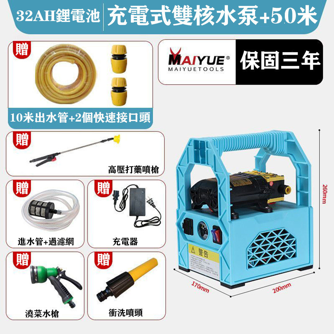 半小時前全台首推,好評爆滿!德國MAIYUE鋰電充電式抽水泵,澆菜/打藥/洗車/灌溉,輕鬆都能搞定‼️ - 32A鋰電雙核水泵[使用時長5-6小時](贈50米水管)