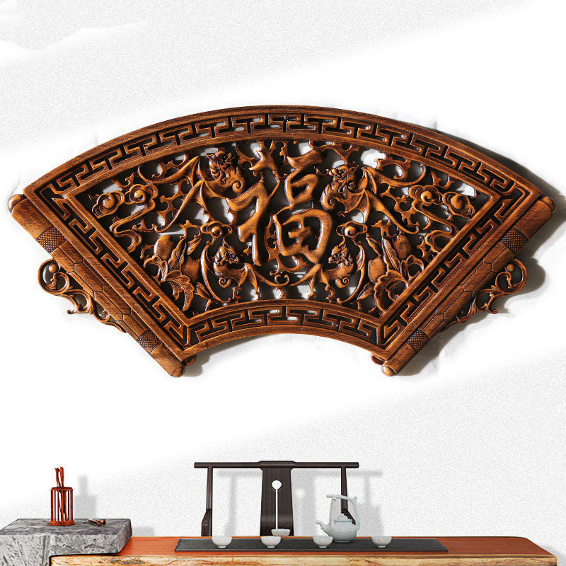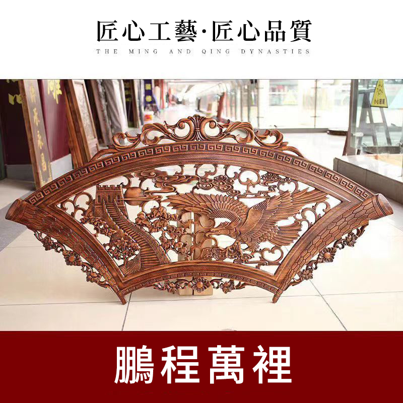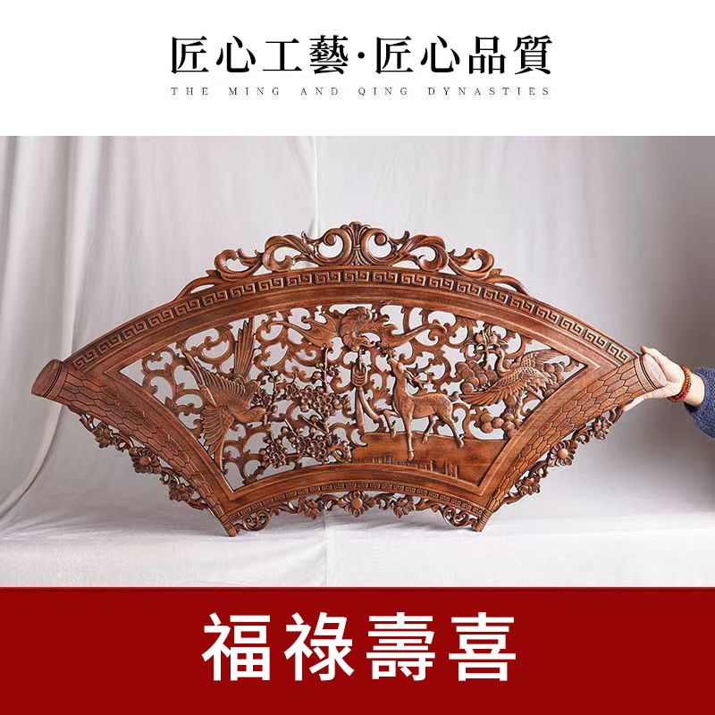半小時前年到!福到! [東陽木雕] 傳承千年木上巧思——天然香樟木雕刻掛件 久放升值 家中旺!年年順! - 典藏款-扇形118*58cm---NT$4880