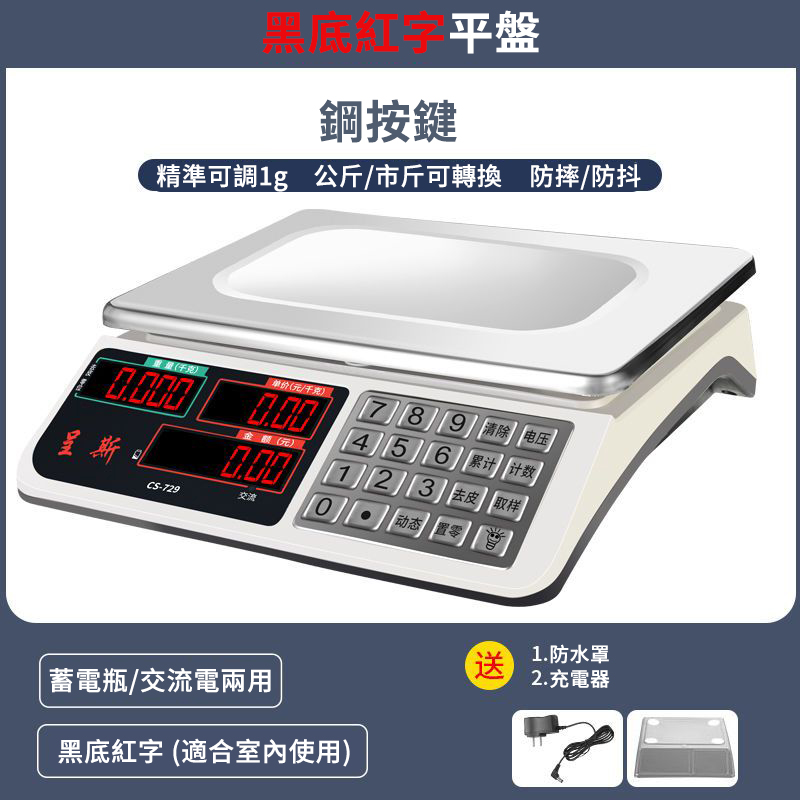 15分鐘前工廠聯合促銷!僅需千元【台灣省電待機王】德國進口商用電子秤 加厚加固超耐用 精準顯示為生意保駕護航 - 大電瓶【鋼按鍵】紅字平盤帶計數+防抖