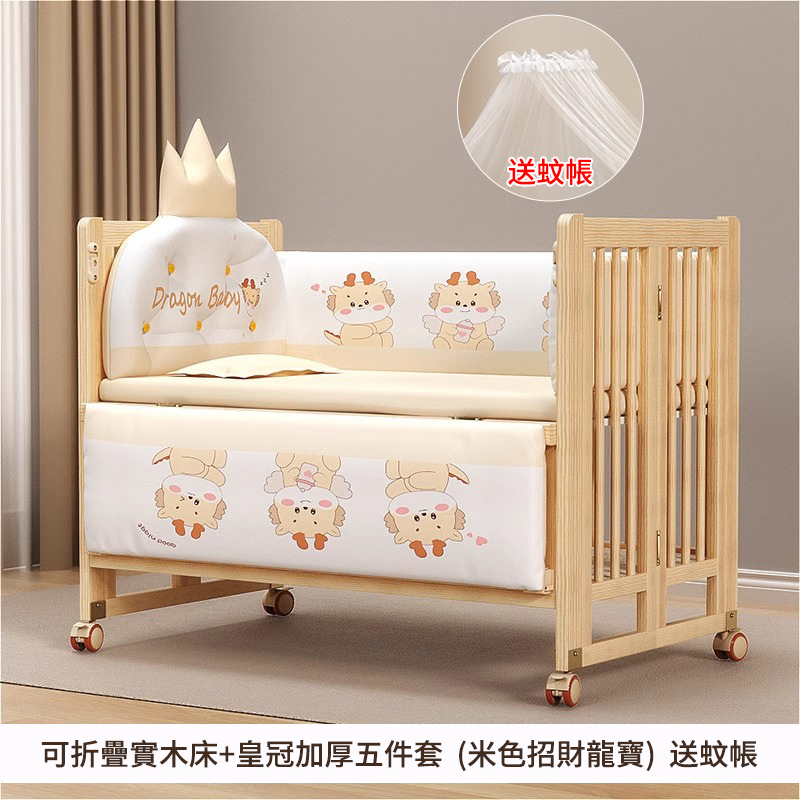 2分鐘前陪伴寶寶成長,永不閒置【嬰兒床-->遊戲床-->書桌】日本超火の可折疊嬰兒床,實木無漆更安心,可拼接大床+滑輪移動,多功能設計陪寶寶成長! - 【118*68*85cm】折疊大床+五件套+棕墊+蚊帳