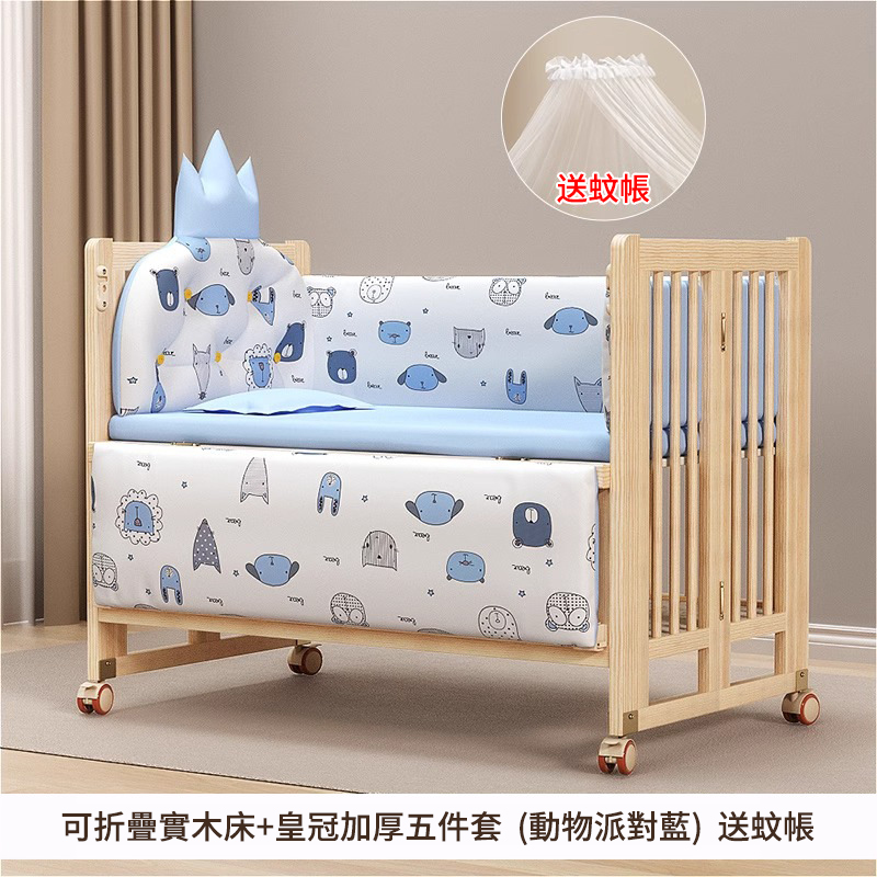 5分鐘前陪伴寶寶成長,永不閒置【嬰兒床-->遊戲床-->書桌】日本超火の可折疊嬰兒床,實木無漆更安心,可拼接大床+滑輪移動,多功能設計陪寶寶成長! - 【103*61*85cm】折疊小床+五件套+蚊帳