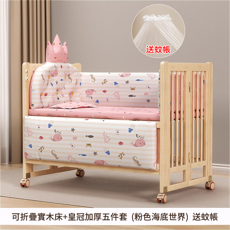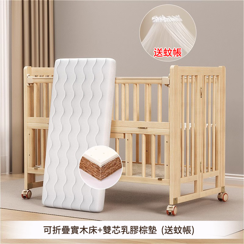 2分鐘前陪伴寶寶成長,永不閒置【嬰兒床-->遊戲床-->書桌】日本超火の可折疊嬰兒床,實木無漆更安心,可拼接大床+滑輪移動,多功能設計陪寶寶成長! - 【103*61*85cm】折疊小床+五件套+棕墊+蚊帳