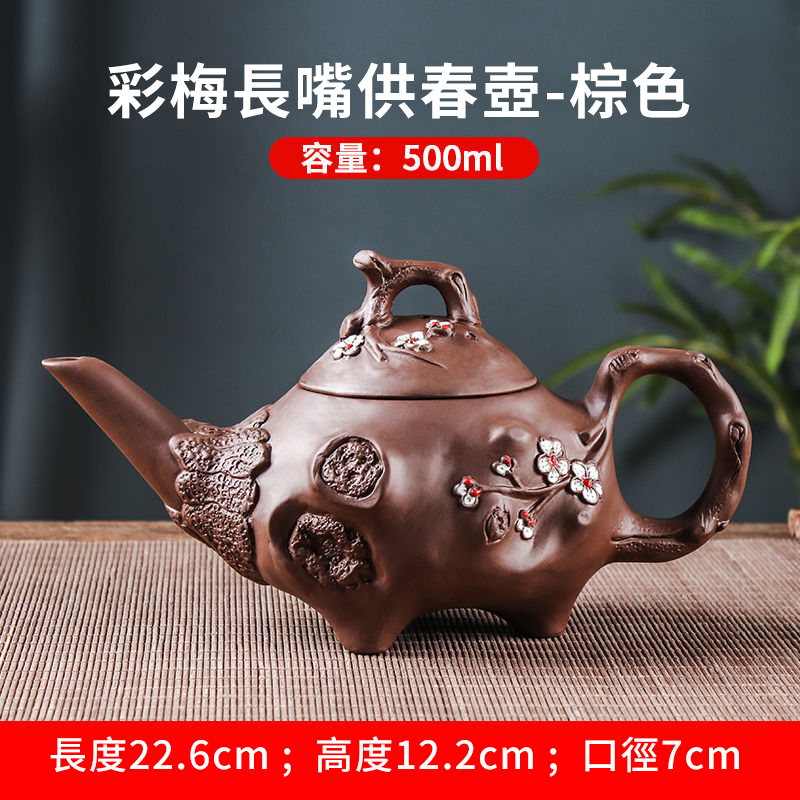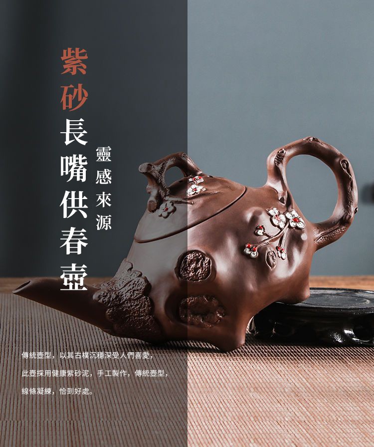 5分鐘前✩ 絕版收藏!正宗宜興紫砂朱泥長嘴供春壺 ❘ 黃金大容量500cc ❘ 純手工浮雕匠製,泡茶更香 - 紫砂朱泥長嘴供春壺500cc