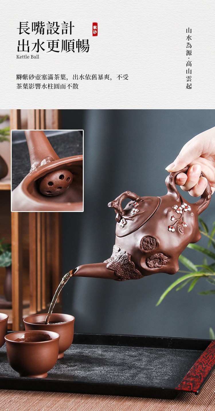 15分鐘前✩ 絕版收藏!正宗宜興紫砂朱泥長嘴供春壺 ❘ 黃金大容量500cc ❘ 純手工浮雕匠製,泡茶更香 - 紫砂朱泥長嘴供春壺500cc