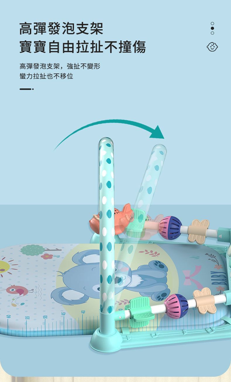 所以建議挑選健力架時,要選擇色彩豐富的款式,對於寶寶的視覺發展會更有幫助唷~