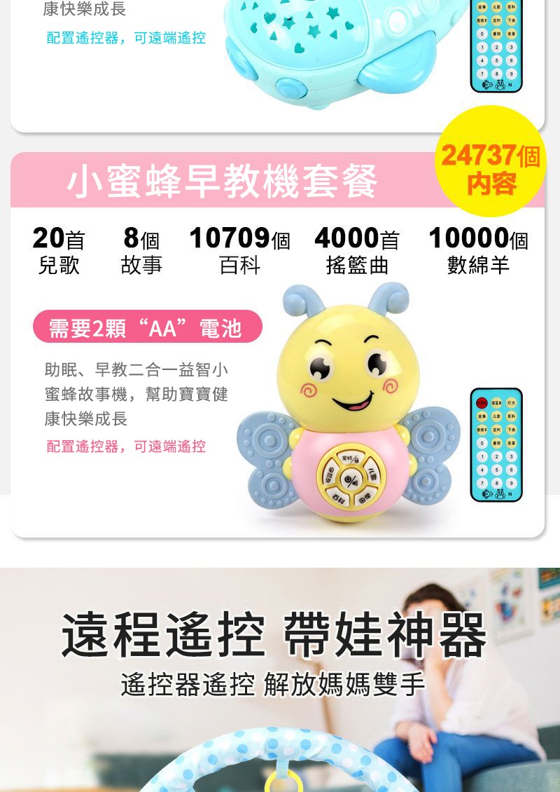 25分鐘前【破價預警】【寶寶成長特惠】0-1歲寶寶的神奇玩具-健身架音樂腳踏琴玩具,益智啟蒙好幫手! 讓寶寶從此放下手機、iPad! - 益智燈光蜜蜂【25444個內容】遙控充電