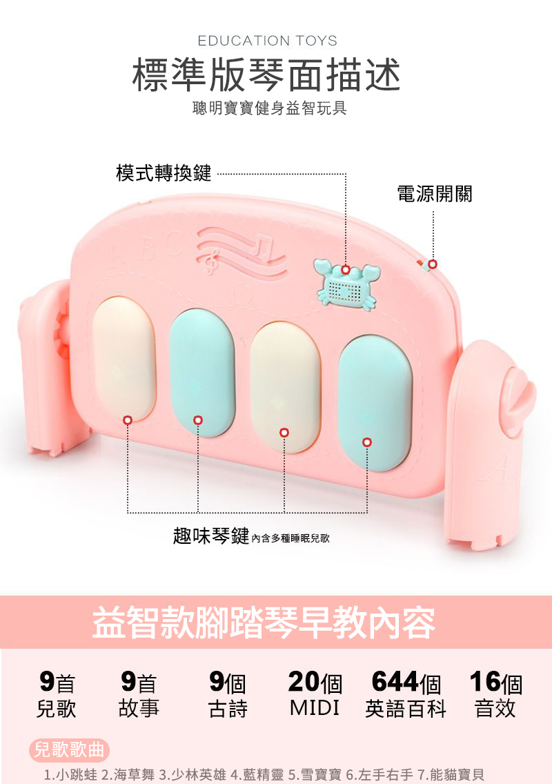 20分鐘前【破價預警】【寶寶成長特惠】0-1歲寶寶的神奇玩具-健身架音樂腳踏琴玩具,益智啟蒙好幫手! 讓寶寶從此放下手機、iPad! - 兒歌益智款【送充電】707內容+夜燈飛機+護欄